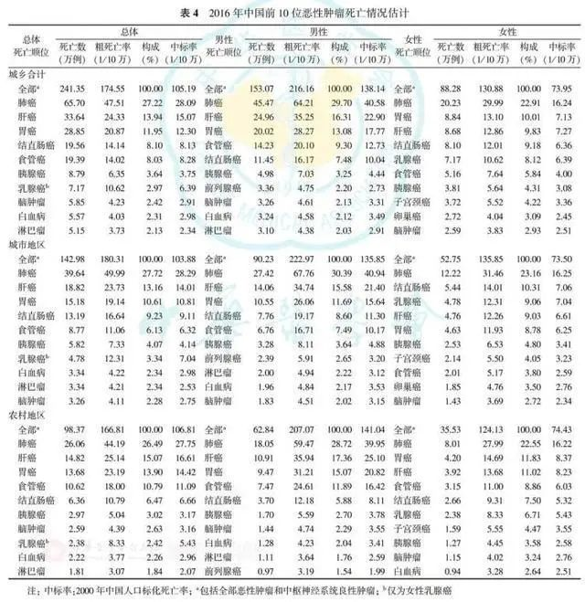 3月22日,《中华肿瘤杂志》宣布国家癌症中心、中国医学科学院肿瘤医院的重磅文章,宣布2016年中国恶性肿瘤流行数据,首次提供各省主要癌谱流行情况。 这份报告凭据全国各肿瘤挂号处上报至全国肿瘤挂号中心的2016年恶性肿瘤挂号数据,预计2016年中国恶性肿瘤流行特征。纳入切合数据质控标准的487个挂号处数据。按性别、城乡、年龄分层盘算差别肿瘤的发病率和死亡率。结合中国人口数据,预计2016年中国恶性肿瘤发病、死亡情况。 结果显示:中国目今的主要恶性肿瘤包括肺癌、结直肠癌、胃癌、肝癌、女性乳腺癌等,前5位恶性肿瘤发病约占全部新发病例的57.27%。肺癌、肝癌、胃癌、结直肠癌、食管癌是主要的肿瘤死因,约占全部肿瘤死亡病例的69.25%。